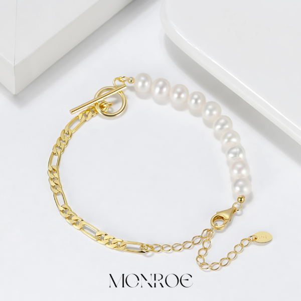 צמיד כסף סטרלינג 925 חצי פיגארו קלאסי וחצי שזור פנינים טבעיים